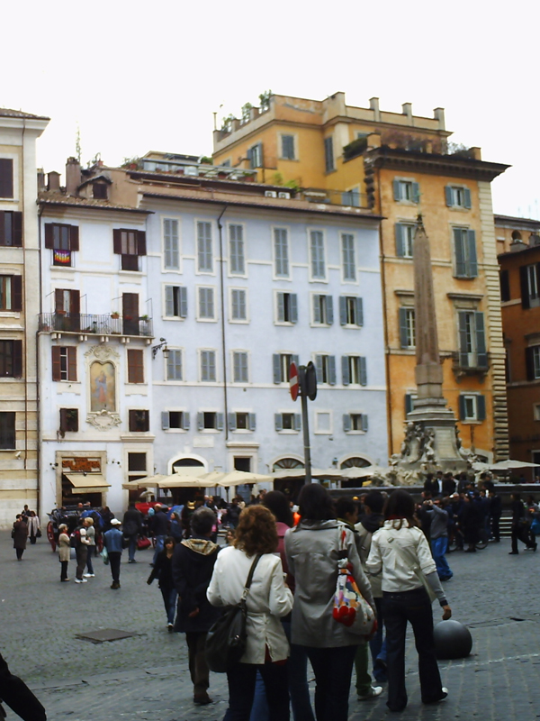 le plus grand parc de Roma (14 000 ha), en passant par la Villa Medici (l'Académie de France). Aba ne voulait pas louer de bicyclette, alors, ils les ont fait à pied.Puis, ils sont descendus vers la Piazza del Popolo, la Via del Corso, manger une glace énorme "Nocciola e melone con panna (mmmh, crème chantilly)", à la Fontana di Trevi pour jeter une pièce au-dessus de l'épaule gauche, pour s'assurer d'y revenir …,