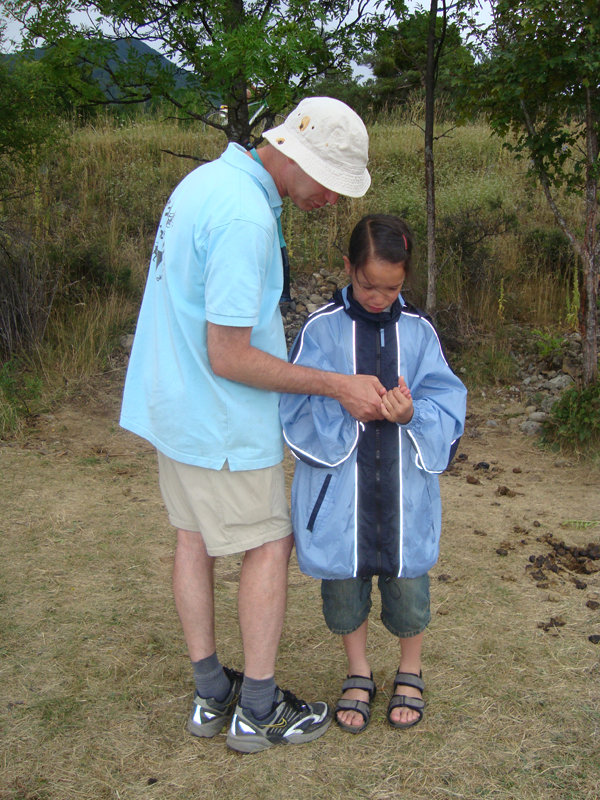 It was raining very shortly ! Anyway, the weather can change very quickly in the mountains … so we're not worry, you see. As we return to the departure point, Bénédicte was waiting for us. She doesn't only offer hiking with donkeys, but she's doing accomodations, too. But not the usual way … it's a nomade camp : yurt, tipi, travel trailer … in the middle of nature, no electricity and no running water ! It's the sun who heats you your shower water … .Hum, we don't think, that Mama is going to appreciate that, hi, hi, hi.