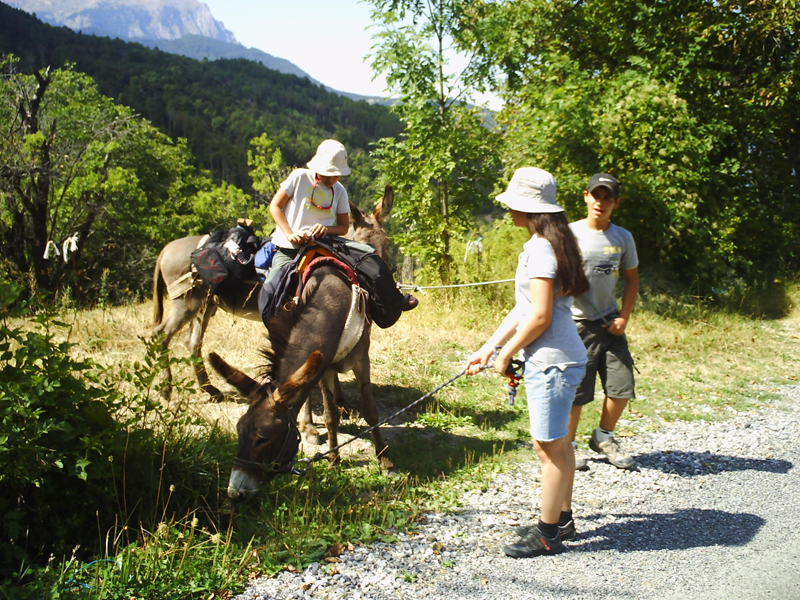 Mama found a place, pretty near to where we stay, to rent donkeys to hike with … have a look on their site : www.montanes.fr . Mme Bénédicte Bégué who runs this place is very nice and professionnal ! She knows everything about donkeys and the surroundings and she rented us two donkeys for the price of one (actually she wanted the other donkey to have fresh air … but at the end he carried for us things, too), so we gave her a nice "tip" ;-).