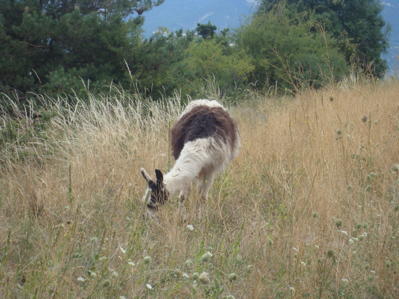 So, "Bichette", the mother" and her 4 year-old son "Câlin" accompanied us during almost 7 hours ! They are "Ânes de Provence", that means "donkeys from the Provence" … they are grey and have the cross of Saint André on their back.