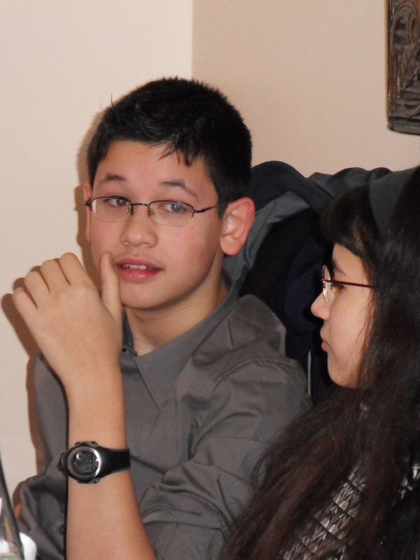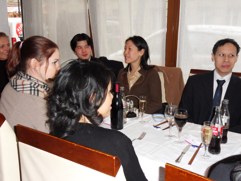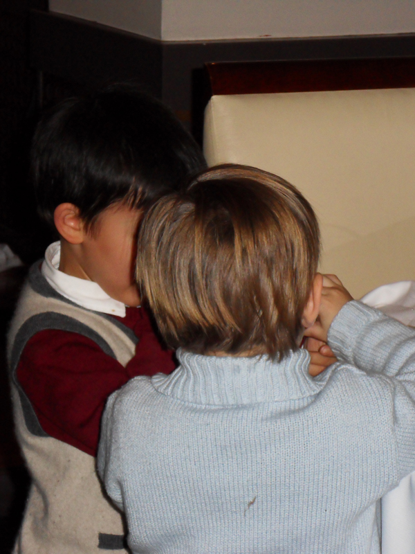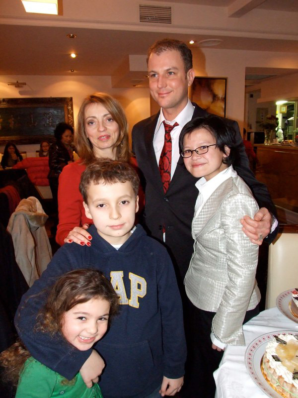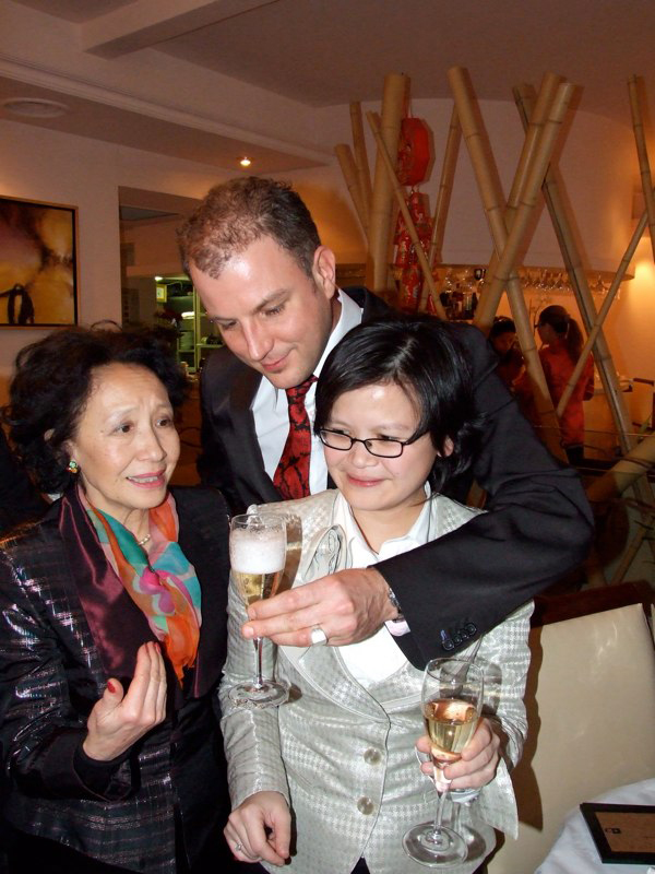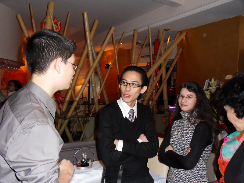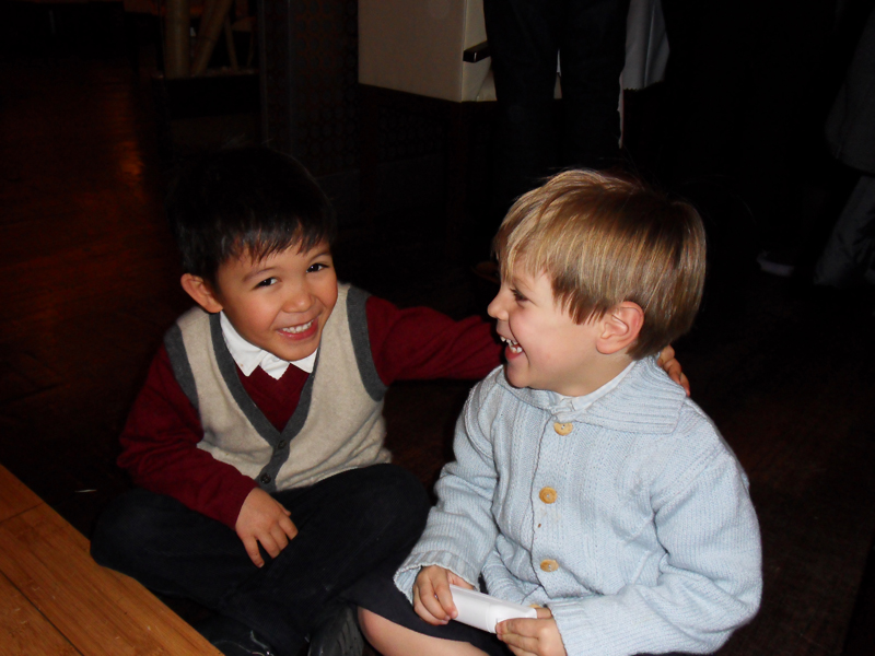 Mmmmmh, les bons gâteaux!! Aaaargh, on ne sait pas goûter lesquels d'abord. On sabre le champagne … Hugo a trouvé un copain … Tomer fait rigoler Mama … un dernier tendre bisous … et c'est le moment de se séparer … . All good thing comes to an end, mais pas pour Li et Manu!!!