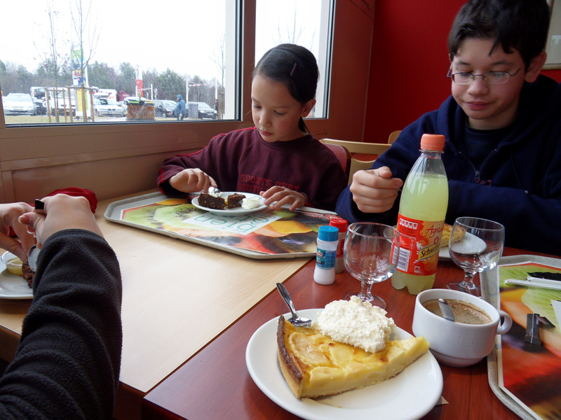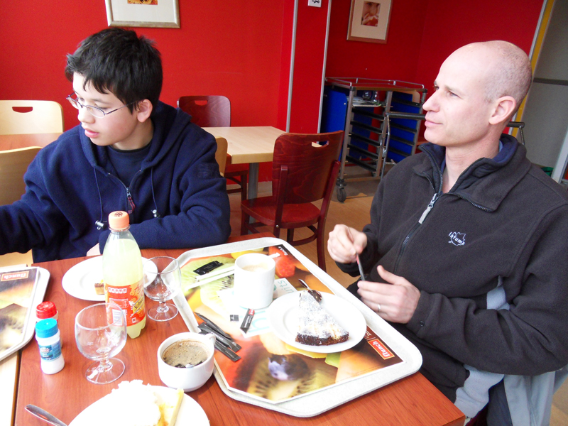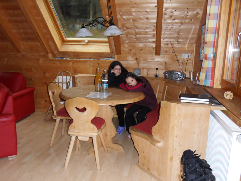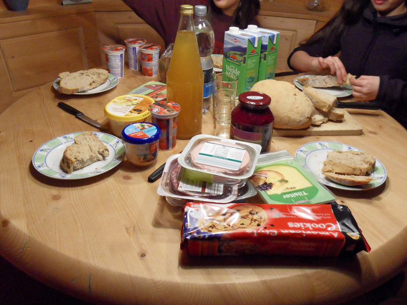 Ouf! Il y a de la neige! Et on peut skier!!! La piste ouvrira à 10h00 demain. Aba va mieux. Et Mama aussi va mieux. Imaginez! Des vacances de neige sans neige! Au secours! Après tous ces émotions, on a mérité un bon petit repas du soir. Avec tous ces états d'âme, on a faillit oublier de manger …