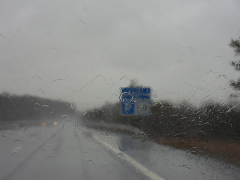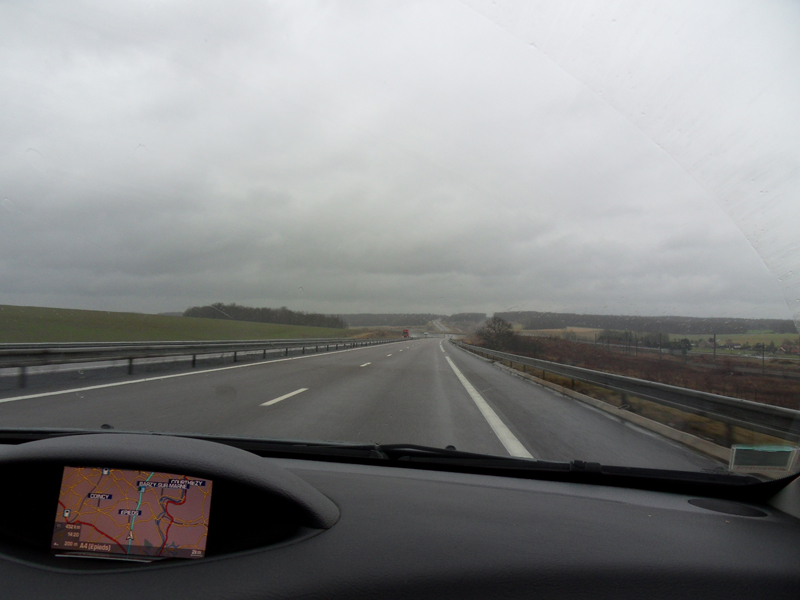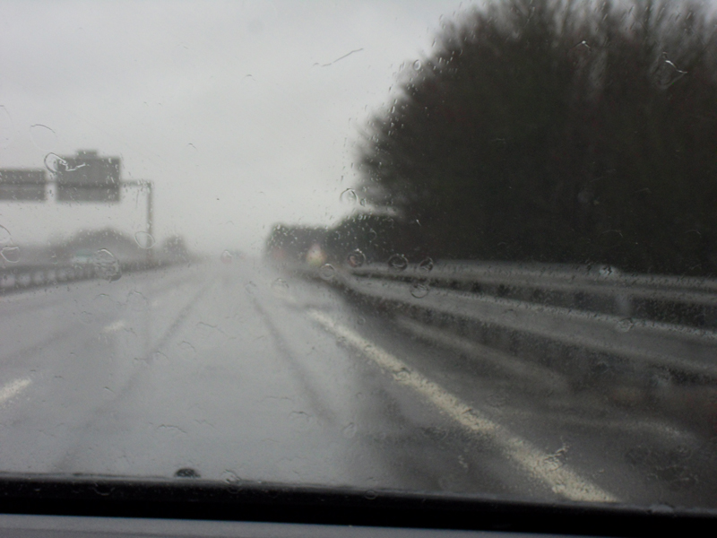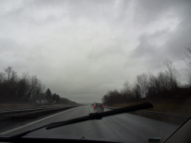 En route pour Fischerbach dans le Schwarzwald. C'est pour aller faire du ski. Déjà faire du ski … ce n'est pas trop la tasse de thé de Mama … en plus, comme vous pouvez le voir, il pleut "cats and dogs"!