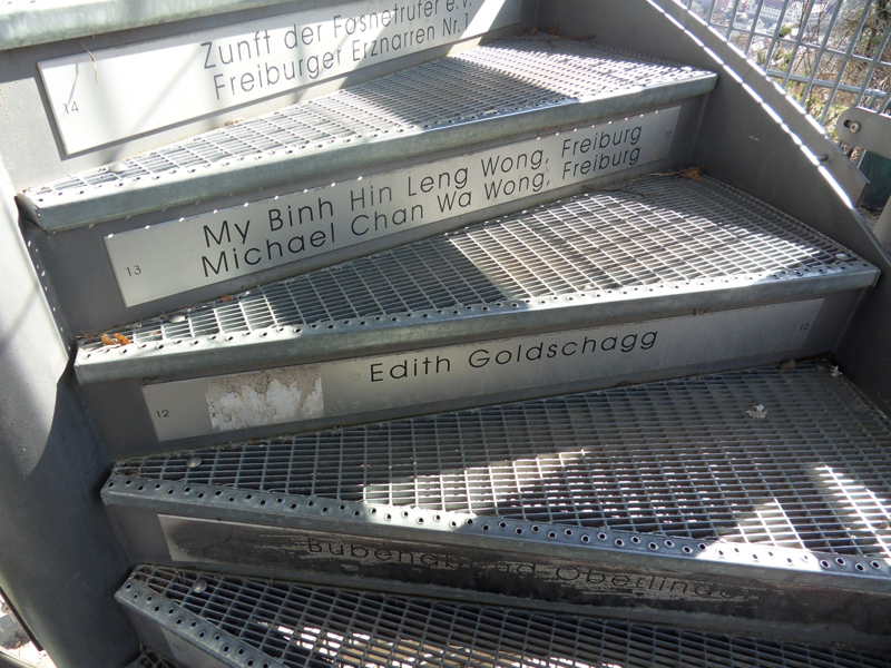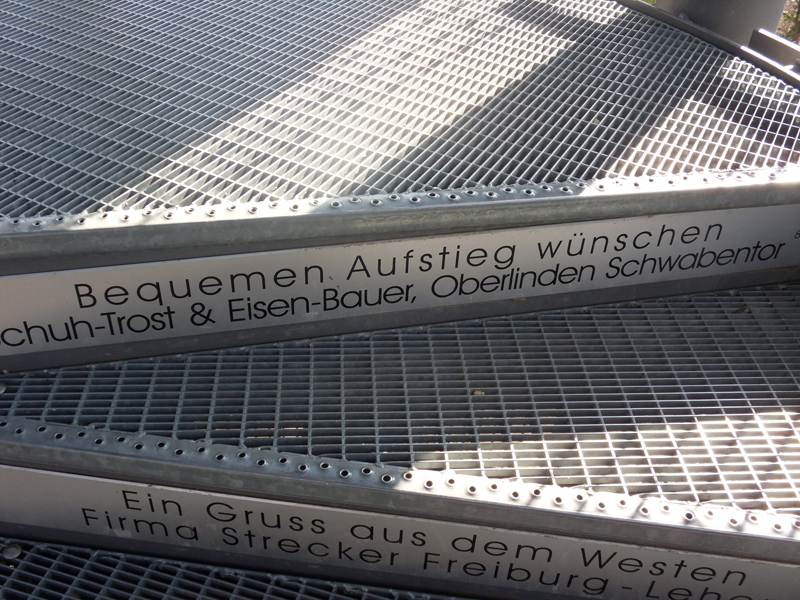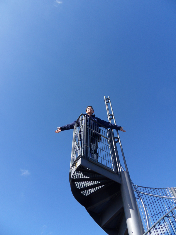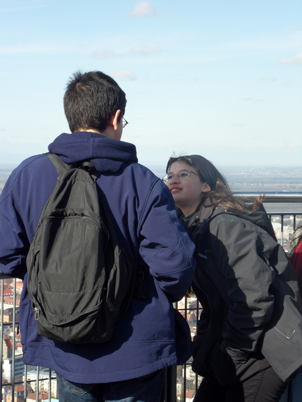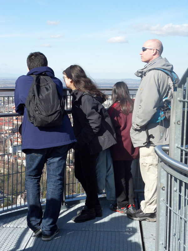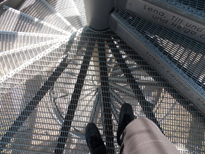 Tout là-haut, c’est comme Kate Winslet et Leonardo Di Caprio dans Titanic… bon, il manque l’autre moitié =) … mais, ça vous fait le même effet! C’est comme si vous volez! L’escalier en spirale est contruit avec l’aide des dons des citoyens … c’est pour cela que vous voyez leurs noms sur les marches.