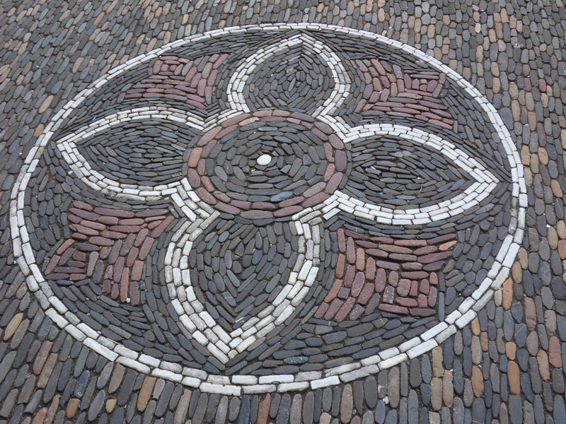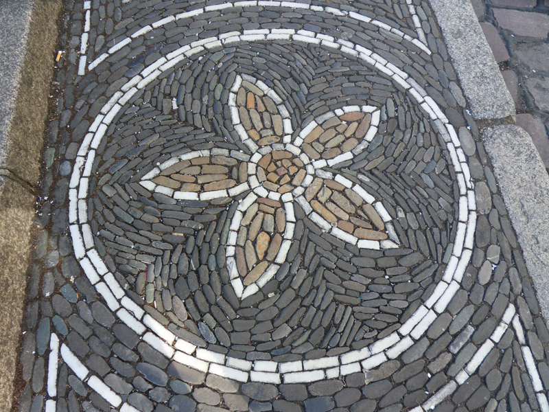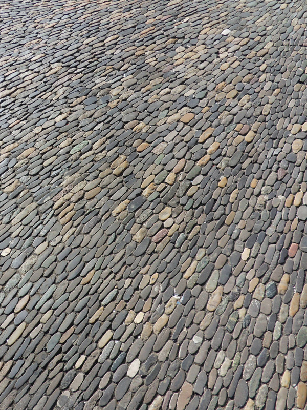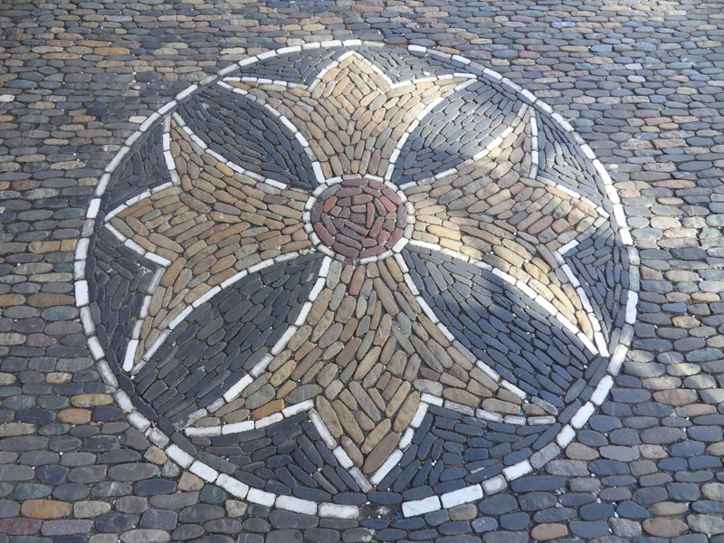 Belle descente avec une vue magnifique et toute romantique sur la ville! Mais la journée n’est pas encore terminée … regardez, par exemple … le pavé ici est très joliment décoré …