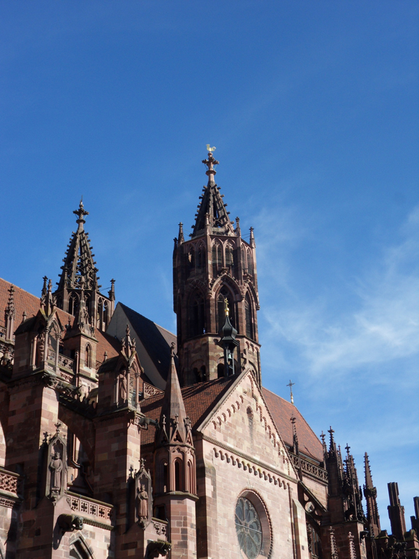 Freiburg im Breisgau se trouve à une cinquantaine de km de Fischerbach. C’est vraiment une belle ville et aussi une de plus ensoleillée de l’Allemagne. La première chose qu’on a visité, c’est le « Freiburger Münster », bien sûr. Un magnifique monument. Regardez …
