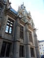 « Cet édifice gothique fut construit à la fin du Moyen-Âge … Parlement de Normandie sous François Ier … l’édifice a reçu un somptueux décor: le toit immense est composé de grandes lucarnes et d’une balustrade hérissée de pinacles , reliées entre elles par des contreforts ajourés … »
