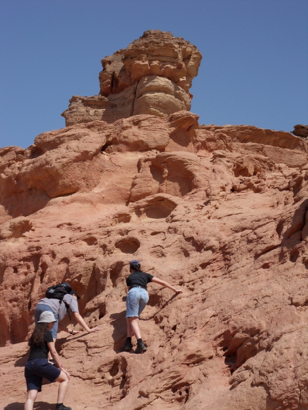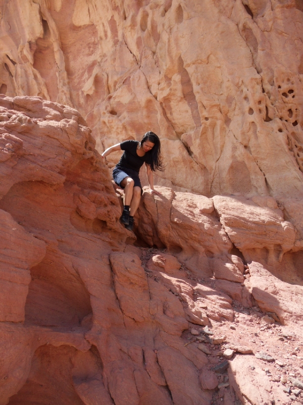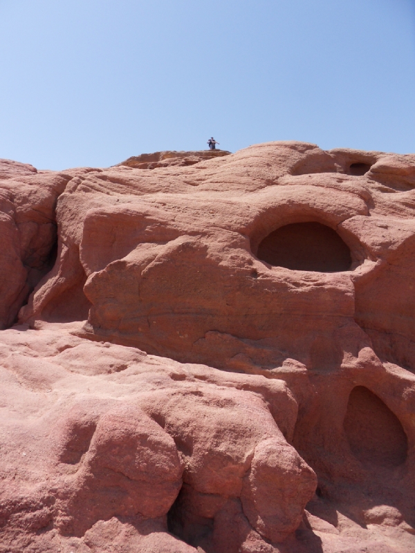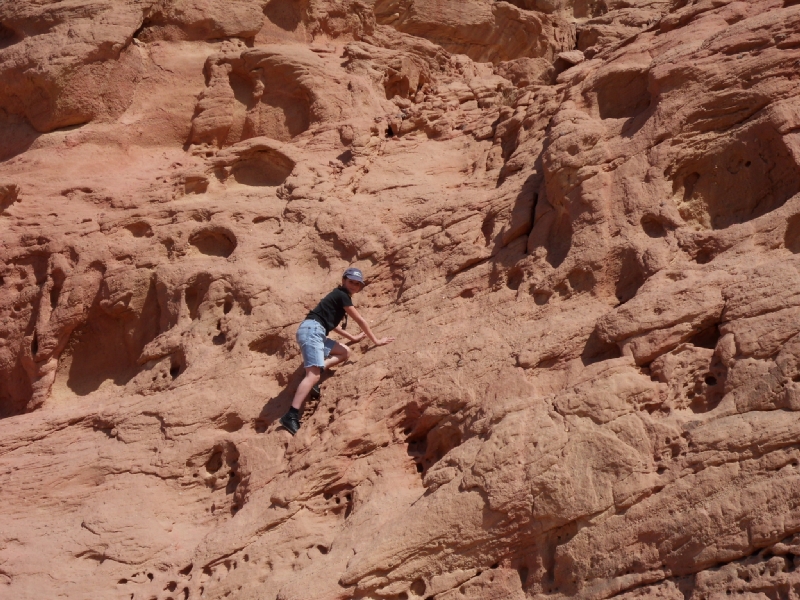 On est fou. Plus de 300 photos (on en a fait plus 😦 … mais avons seulement choisi les plus belles 🙂 …). Il vous faut au moins un jour entier pour découvrir le Parc Timna. Tu ne sais pas où regarder d’abord. C’est vrai, c’est en plein désert, il n’y a pas de bâtiments, pas de tableaux, pas de monuments, pas d’écrits … mais chaque angle de vue est différent. Tu es seul avec la nature … somptueuse, majestueuse, grandiose … elle règne ici … en seule maîtresse! Et puis, après la chaleur du désert, qu’est-ce que vous avez envie de faire? Aller nager dans un eau rafraîchissant, quoi d’autre?!