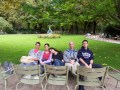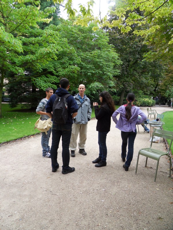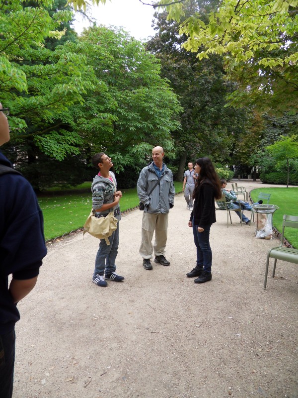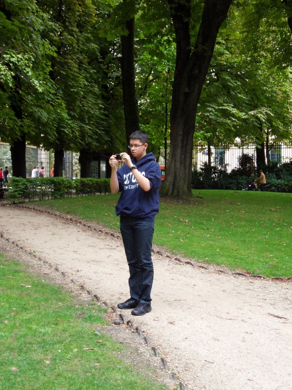 Il pleut … mais là, on sort quand même. Omer est là … et c’est tout à fait normal, qu’il a envie de sortir. C’est comme si tu étais à New York … et que tu ne sors pas, parce qu’il … pleut. C’est aberrant! Mama préfère du beau temps … pfff … qui ne le préfère pas?! « Les photos sont plus jolies avec un ciel bleu », dit-elle … « Ah bon? » Nous, on n’aime pas être pris en photo :-(. Pourtant, même sous la pluie … le jardin du Luxembourg dégage bien du charme. La preuve, on n’est pas seul ici. Et le bâtiment en brique rouge en style oriental que vous voyez sur les premières photos, c’est l’Institut d’art et d’archéologie qui est également appelé le Centre Michelet. Mama aurait bien voulu visiter … mais c’est fermé en août.