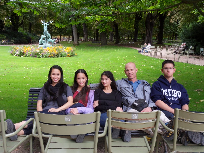 It’s raining … but there, we go out all the same. Omer is there … and it’s completely normal, that he wants to go out. It’s as if you were in New York and you do not go out out, because … it’s raining. Totally absurd! Mama prefers nice weather … pfff … who doesn’t?! « Photos are more beautiful with a blue sky », she says… « Ah yes? » We, we don’t like being photographed :-(. Nevertheless, even in the rain … the Luxembourg garden has its charms. The proof, we are not alone here. And the red brick-built building in oriental style which you can see on the first photos, it’s the Institute of art and archaeology, that is also called the Michelet Centre. Mama would have love to visit … but it’s closed in August. Good night, my wonderful family, sweet dreams and laila tov! Keep in touch with …