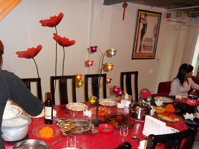 Ce soir, c’est la famille du côté de Cô Vàng qui nous rend visite: Anh Vũ, Cô Lan et Phương Thảo. Cô Lan, c’est la fille de la petite sœur de Cô Vàng. Leur petite fille de 2 ans et demi, Phương Thảo était au début un peu timide … mais vers le milieu du repas … et après un petit cadeau offert par Chị Mai … Mademoiselle s’est transformée en une chanteuse et danseuse talentueuse, bilingue et bien drôle :-). Elle a eu beaucoup de succès et un Fan Club à présent, hi, hi, hi.