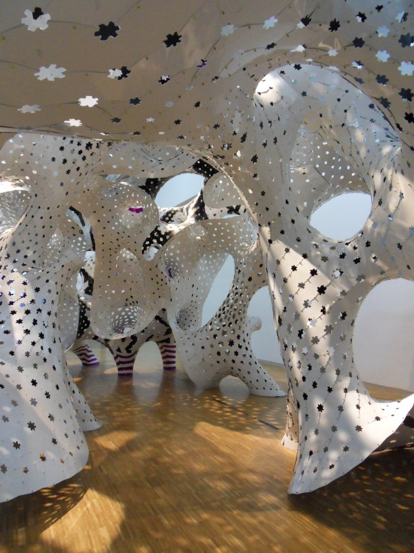 Après la messe avec Père Georges, nous, on est rentré à la maison car on a beaucoup de devoir à faire :-(! Mais pas Mama ;-). Il faisait super beau et comme Mama n’était pas très loin du Centre Pompidou … elle a profité pour y faire un saut, car ça fait un bon moment qu’elle veut voir l’exposition sur Yayoi Kusama! Vous la connaissez peut-être? C’est une artiste japonaise, née en 1929 (!) et connue dans le monde entier de l’Art moderne, entre autre, par sa « marque de fabrique » qui sont les « pois » représentés dans toutes les couleurs sur toutes sortes de supports: tableaux, meubles, chaussures, pièces … . C’est hallucinant (et effectivement, elle a dit que ses visions viennent de ses hallucinations!) … et vous ressentez un peu les mêmes effets. Mais c’est dans le prochain article :-). Mama s’est trompée de direction … ne dit-on pas que les cordonniers sont les plus mal chaussés? Ce proverbe tombe toujours juste sur Mama :-)!Et bien, donc, Mama s’est trompée de direction et s’est retrouvée au 4ème étage du Centre Georges Pompidou … pour s’émerveiller devant les collections permanentes, qui ne sont pas trop permanentes que ça, car on les change tous les deux ans … et Mama ne se rappelle pas du tout d’avoir vu ces pièces-là … et oui, c’est correct, la dernière fois où elle était allée voir ce musée, c’était en mars de cette année et la direction a changé la collection le 6 avril 2011! Quelle chance ;-)!