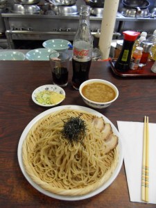 C’est la pause de déjeuner et quand il fait chaud, Mama a souvent envie de ce plat: des nouilles froides avec une sauce à cacahuètes délicieux, le fameux Zalu Lamen de Higuma.