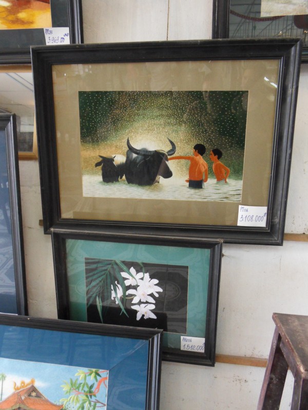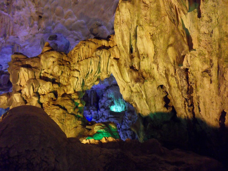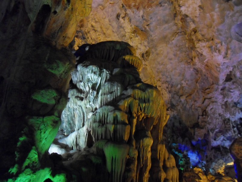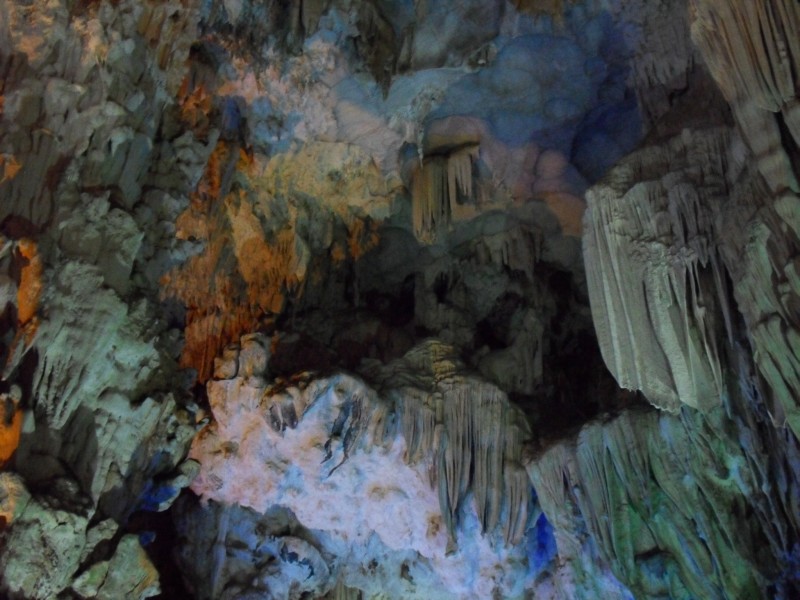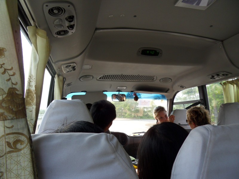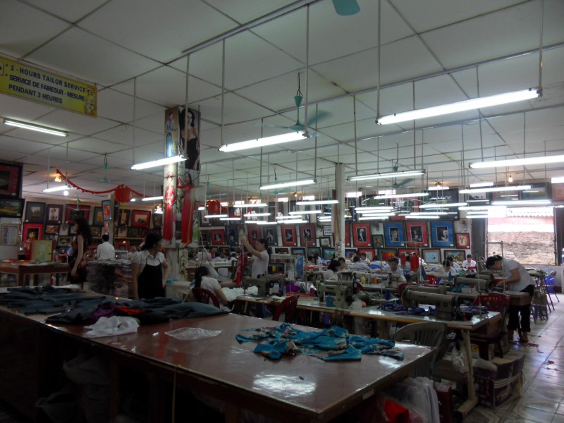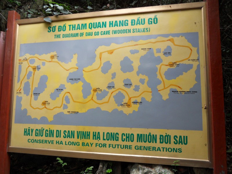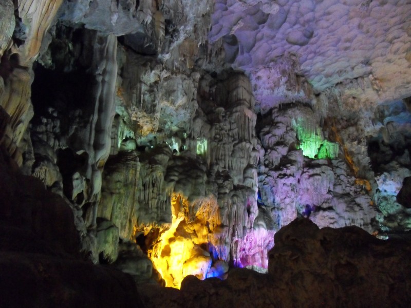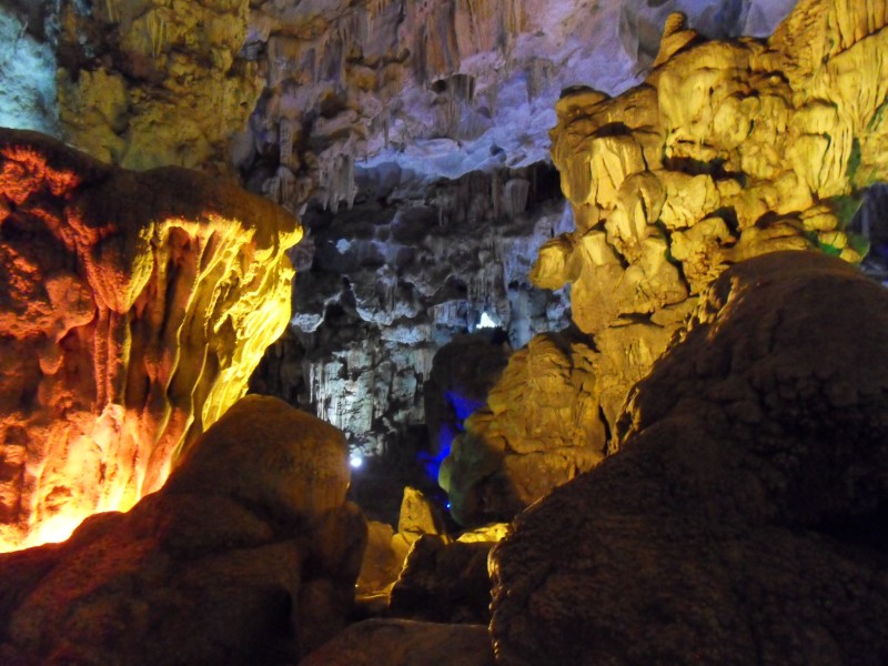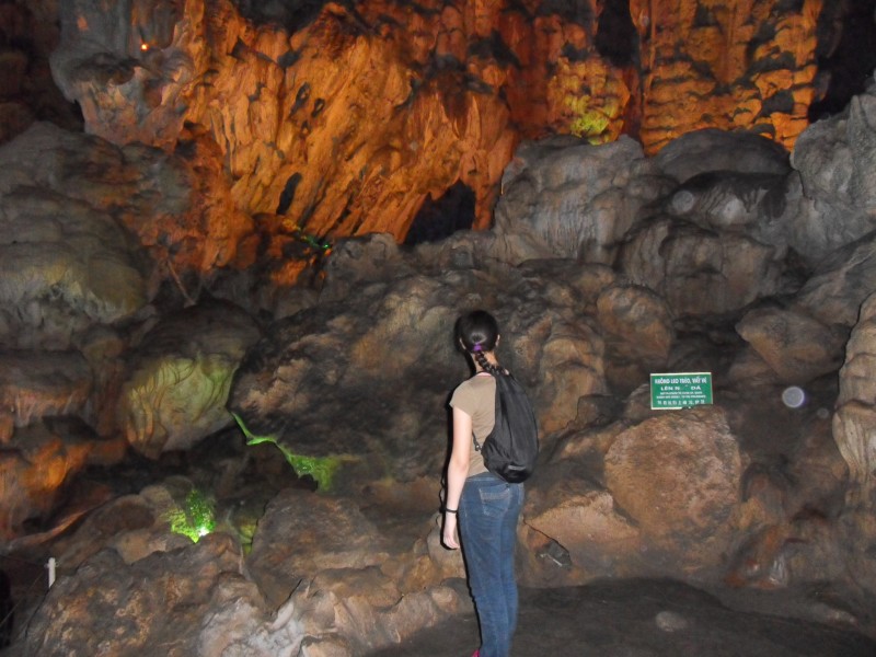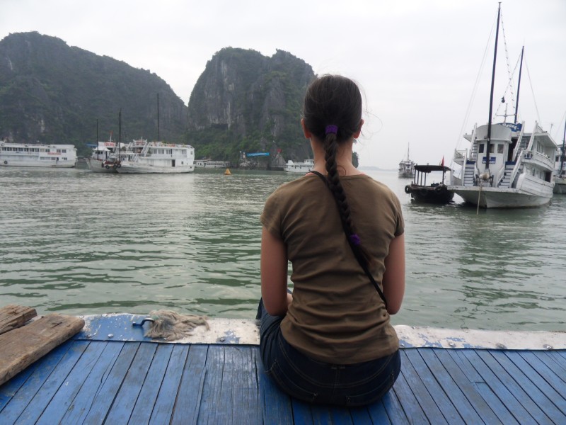 Mai-Anh et Mama se sont réveillées bien tôt ce matin … pourtant elles auraient pu dormir plus longtemps, car l’excursion qui devrait partir à 7h30 vers la Baie d’Along, est finalement partie qu’à 9h00! 😦 Les différents agences de voyage ont mal communiqué entre elles et les adresses des pick-ups ont été mal recopié. Mais bon, elles sont en vacances … alors, elles ne vont pas se lamenter ;-). Sur la route, Mai-Anh et Mama s’arrêtent à nouveau dans une usine qui emploie des ouvriers et ouvrières handicapés, cette fois-ci c’est une usine de broderie. Ce jeune homme, par exemple, qui brode cet énorme tableau d’une femme qui porte des fruits sur son épaule … est sourd-muet … mais avec un sourire radieux! Puis elles continuent leur route vers la Baie d’Along. Que dire encore sur la Baie d’Along ? … comme vous le savez, ça fait 18 ans que Mama n’est pas retournée ici … avant il y avait un ou deux voir trois bateaux par jour qui faisaient le tour de la Baie d’Along … maintenant il y en a environ 600 en tout. Faites le calcul … c’est très touristique par ici, hallucinant. Mais ça fait vivre la communauté … bien mieux qu’avant, donc c’est bien :-). Dommage, que le ciel n’est pas bleu. Mais c’est quand même très beau ici … et le repas sur le bateau … exquis ;-). Bon appétit!