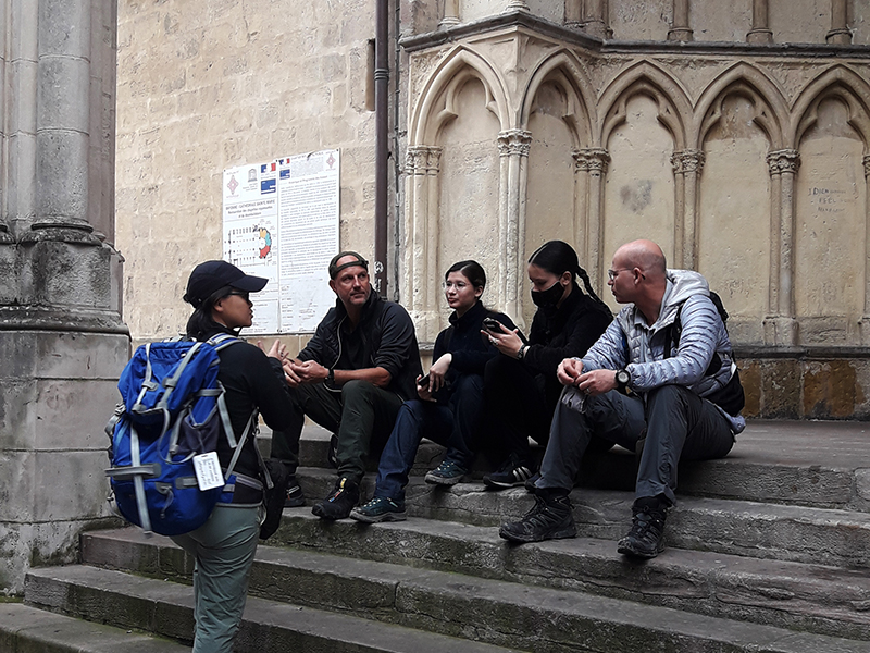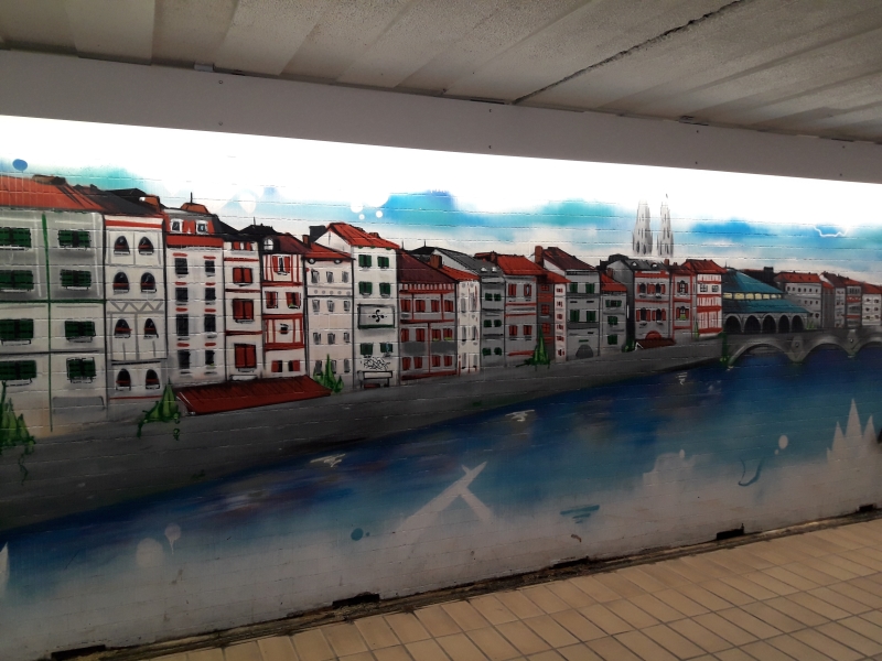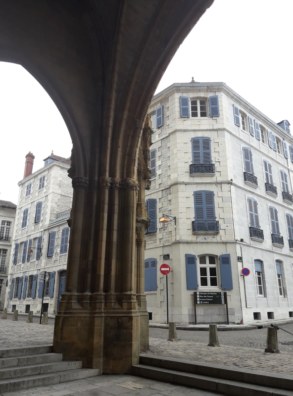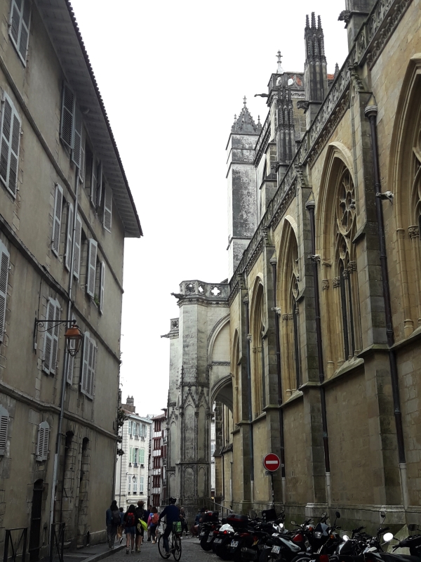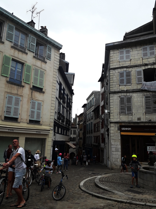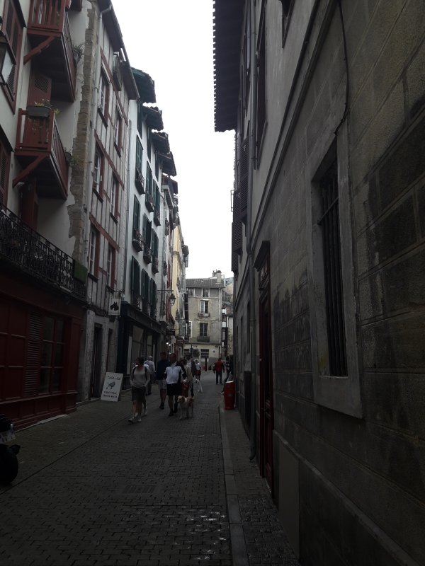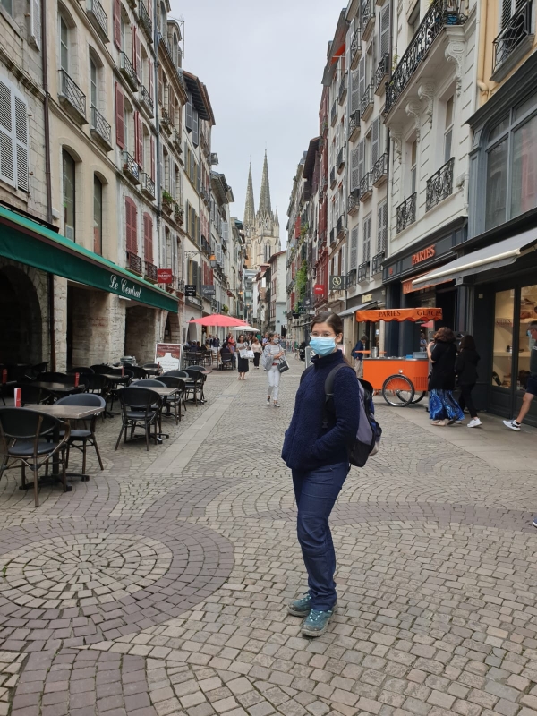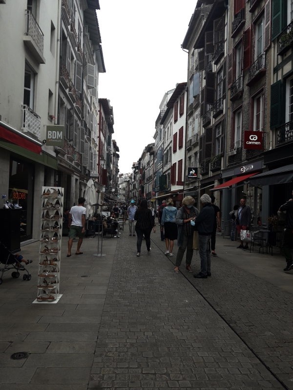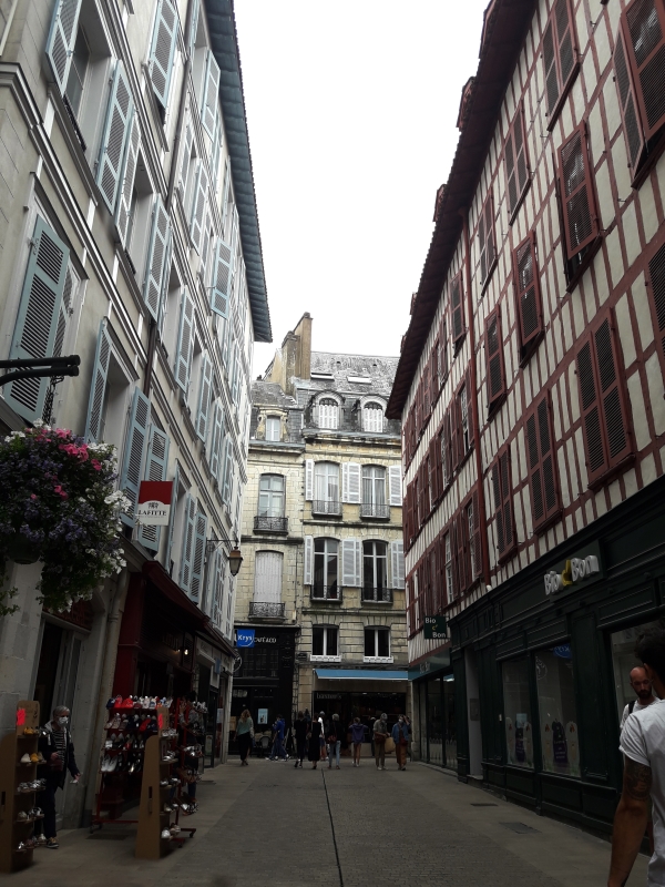 Aujourd’hui on visite Bayonne. Miss Maayan doit rentrer le weekend pour travailler à « la Coiffe bretonne », vous vous rappelez ? Son part-time job ! Malheureusement par l’arrivée du covid, la crêperie a dû fermer pendant un bon moment, alors ce n’est sûrement pas maintenant de demander des congés. On est arrivé dans la vieille ville de Bayonne …