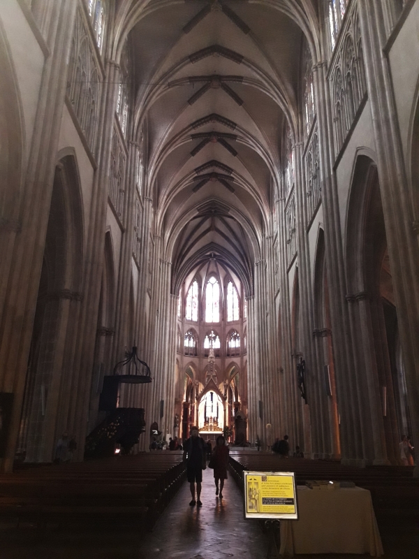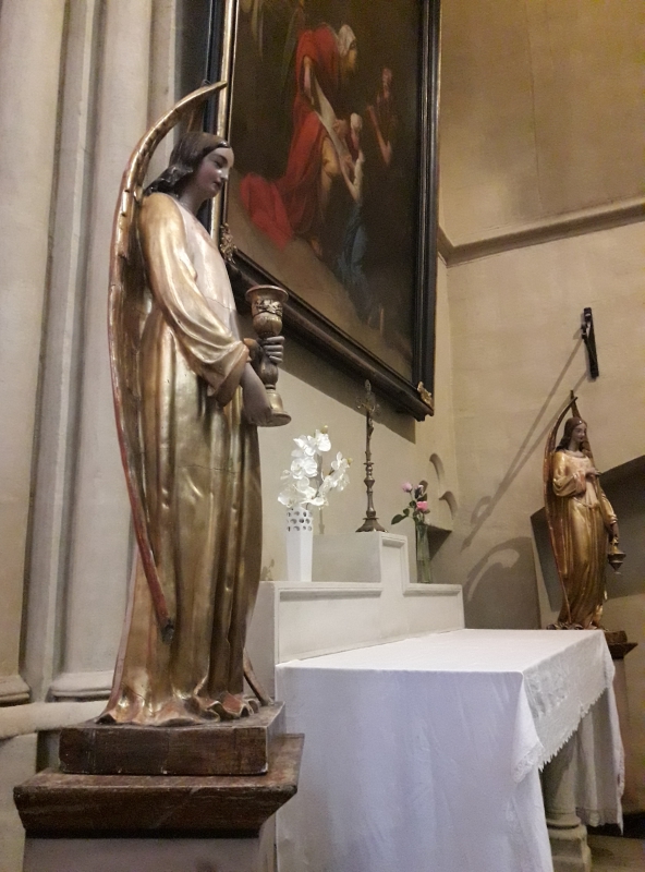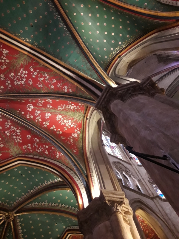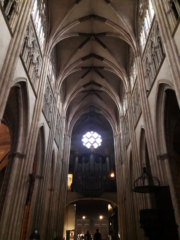 Beaucoup de monde sont masqué ! Mama qui n’a pas regardé des nouvelles depuis quelques jours, croyait d’avoir rater une importante ! C’est assez impressionnant. Très restrictif mais apparemment absolument indispensable. Visite de la cathédrale de Bayonne, Sainte-Marie, le fond de la cathédrale a été complètement rénové … les couleurs ressortent incroyablement lumineuses sur les peintures murales, c’est magnifique !!