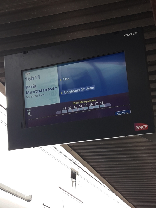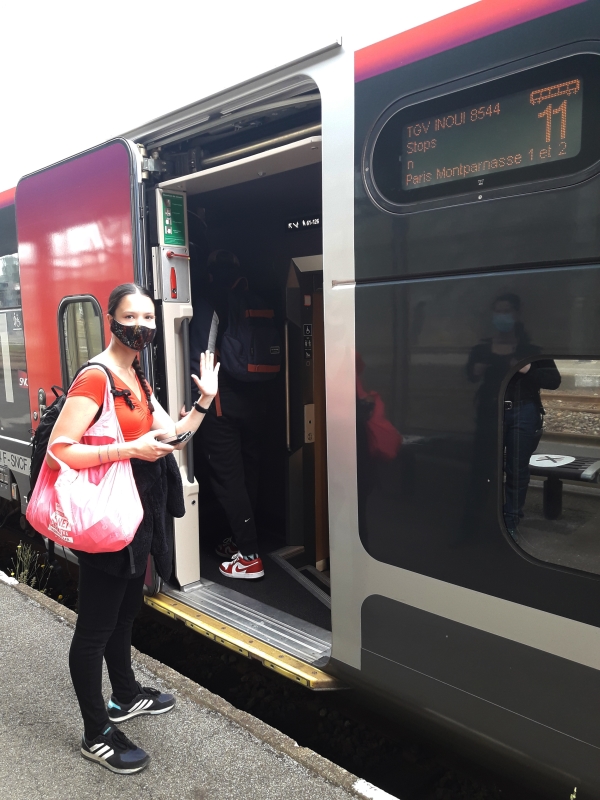 Elle rentre seule et restera deux jours seule. C’est très professionnelle 😊. Mama est toute fière ! Mais que voulez-vous ? Les mamas s’inquiètent ! C’est comme ça depuis le début du temps et ça ne va pas changer si vite ! Le minimum que Mama peut faire c’est … de l’accompagner à la gare … départ à 16h11 !