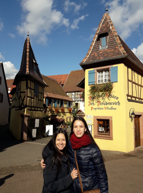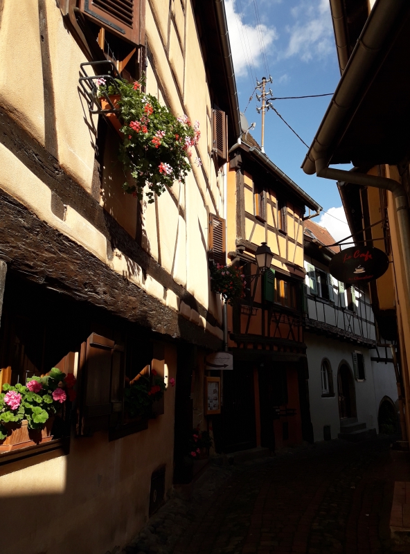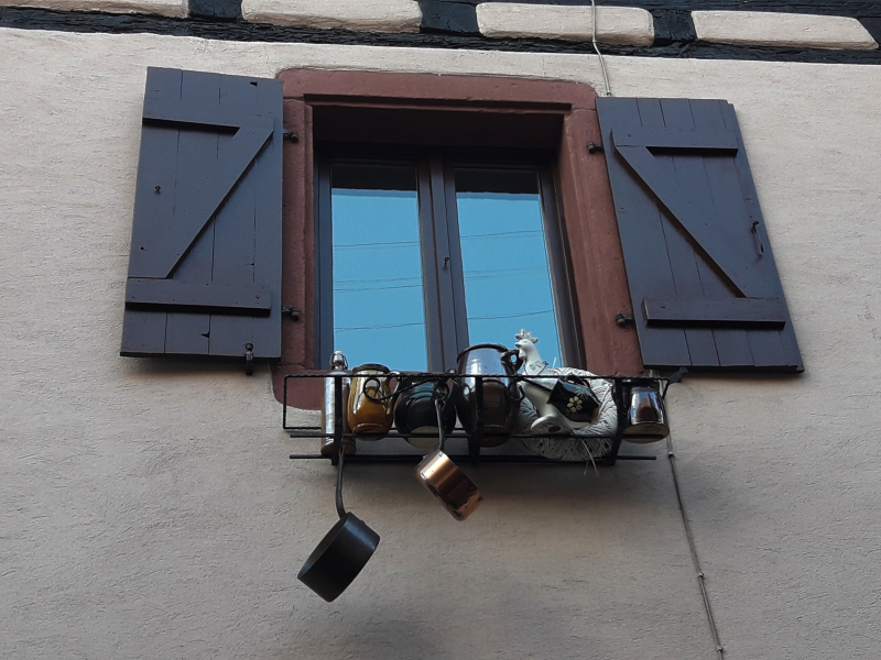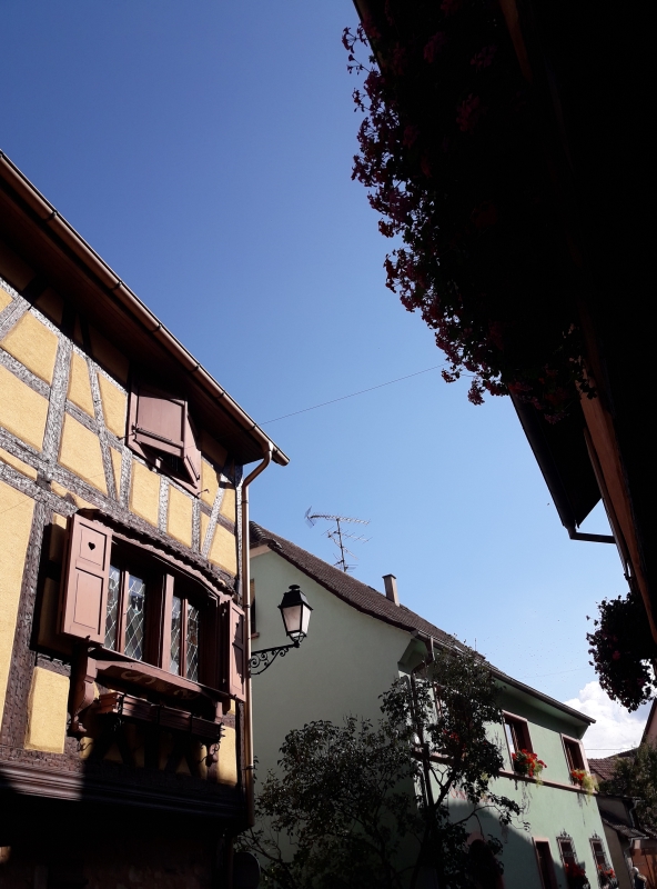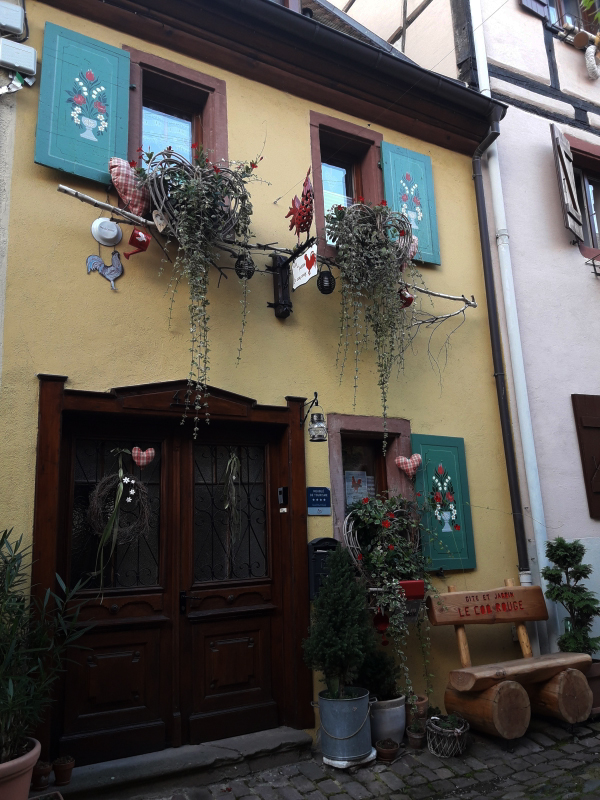 Juste une chose très frappante … c’est calme, très calme ! Pas d’étrangers, pas de touristes … d’habitude on trouve beaucoup de touristes asiatiques en Alsace ! Bon, il y a Mama … 😂, mais ce n’est pas la plus authentique 🤣😅, direz-vous ! Un point en commun entre Eguisheim et le Tibet ? La dernière photo vous en dit longue 😄.