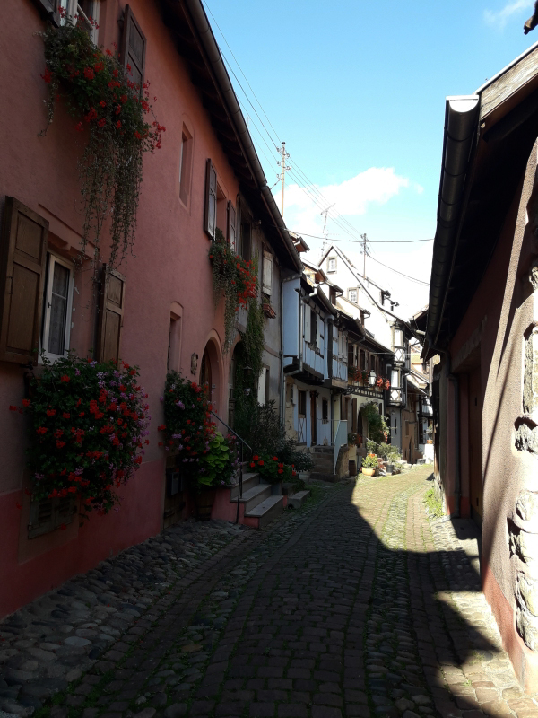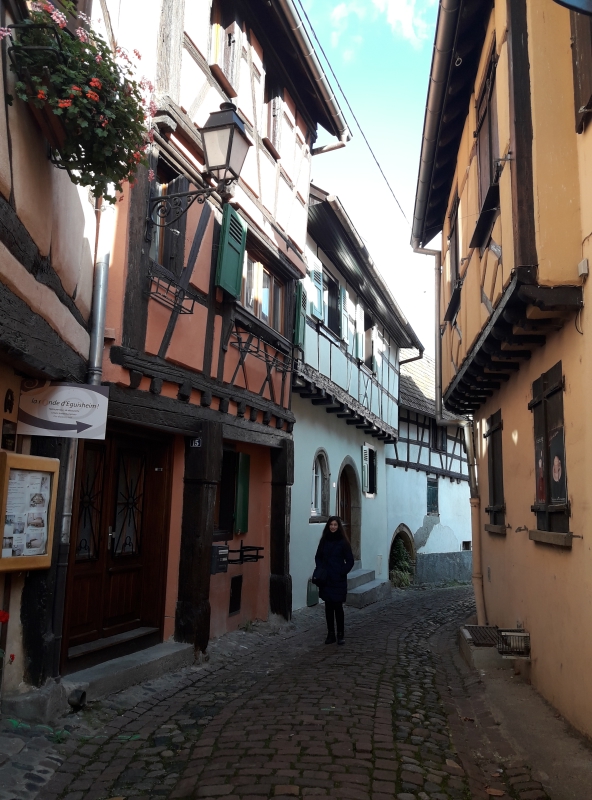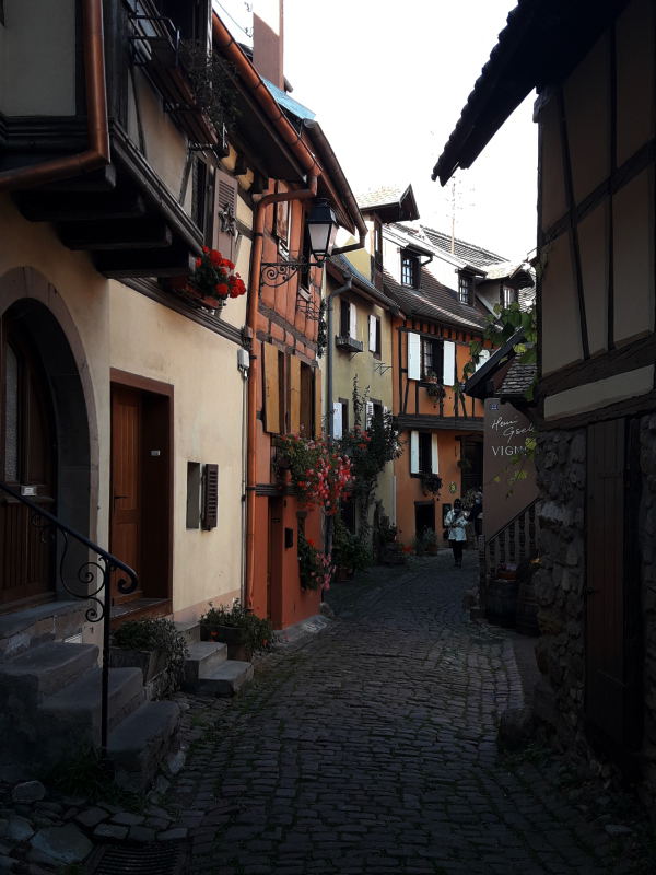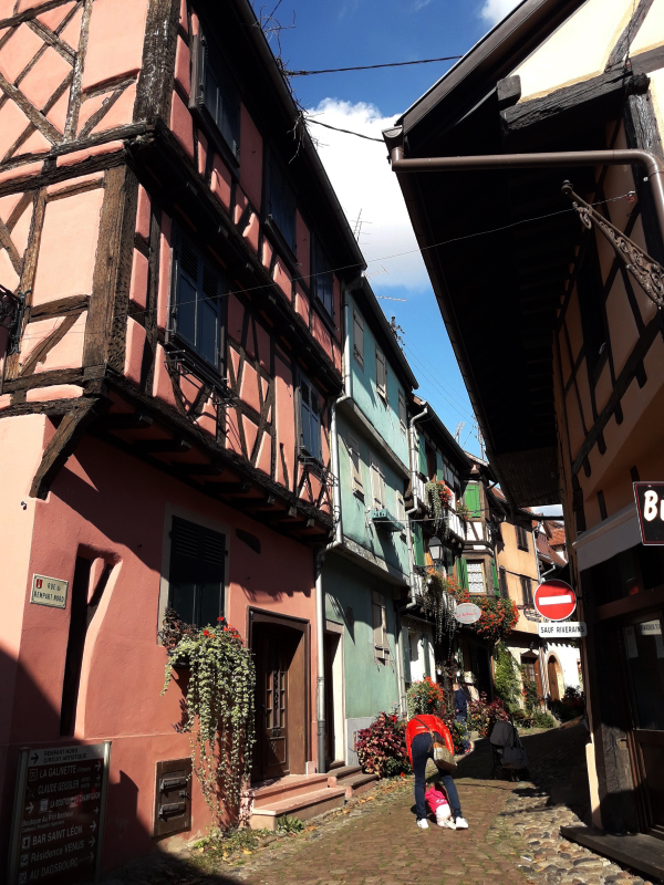 Et nous, on continue notre visite … visiter un maximum de villages les plus beaux et donc les plus connus en Alsace avant de rentrer chez nous et vivre un couvre-feu qui s’annonce à durer !!! Cette pandémie de la Covid-19 est interminable par contre elle 🤒😩😔! Nous voilà, arrivés à Eguisheim ! Des maisons à colombages partout et des fleurs et plantes vertes partout. C’est mignon, on dirait des maisons comme dans les contes de fées 😊 !