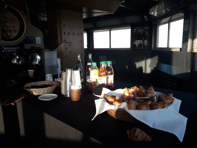 C’est tout simple, café & croissants… mais juste grandiose ! lorsque vous êtes sur le sommet de la Tour Eiffel !